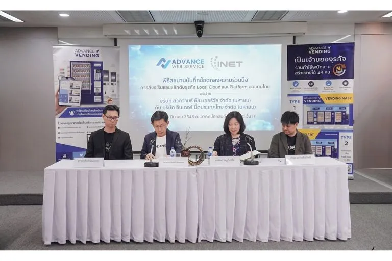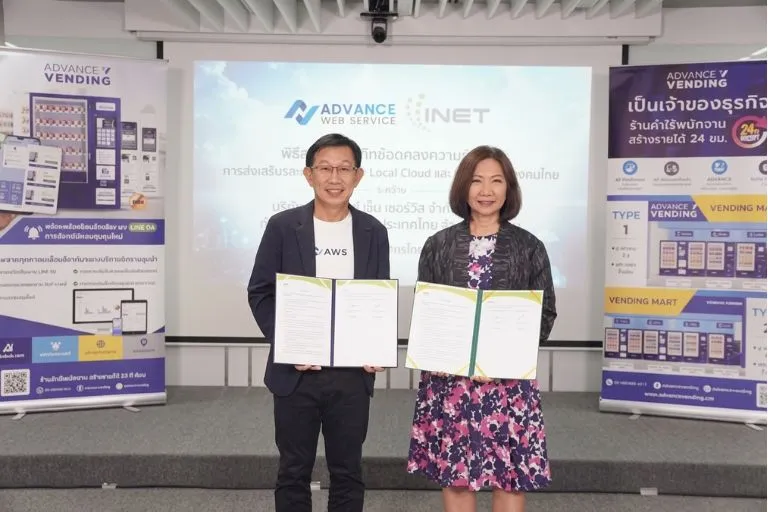 บริษัท แอดวานซ์ เว็บ เซอร์วิส จำกัด (มหาชน) ผู้นำด้านการพัฒนาดิจิทัลแพลตฟอร์มและการออกแบบพัฒนาระบบ Smart Vending Machine ได้ลงนามบันทึกข้อตกลงความร่วมมือ (MOU) กับ บริษัท อินเทอร์เน็ต ประเทศไทย จำกัด (มหาชน) ผู้นำด้านบริการโครงสร้างพื้นฐานไอซีที และให้บริการด้าน Cloud Solution และ Digital Platform ครบวงจร โดยการลงนามความร่วมมือครั้งนี้มีวัตถุประสงค์เพื่อส่งเสริมและพัฒนา Local Cloud และ ดิจิทัลแพลตฟอร์มของไทยให้ก้าวไกลสู่ระดับสากล ด้วยการเสริมสร้างโครงสร้างพื้นฐานดิจิทัลที่ทันสมัยและมีความปลอดภัยสูง รองรับการเติบโตของเศรษฐกิจดิจิทัลของไทยอย่างยั่งยืน โดยมุ่งเน้นการพัฒนาเทคโนโลยีที่สามารถตอบโจทย์การเปลี่ยนแปลงในยุค Digital Transformation ความร่วมมือครั้งนี้ไม่เพียงแต่ช่วยเสริมสร้างความมั่นคงในโครงสร้างพื้นฐานของธุรกิจไทยเท่านั้น แต่ยังเปิดโอกาสให้ธุรกิจไทยสามารถเติบโตในระดับสากล โดยไม่ต้องพึ่งพาโครงสร้างพื้นฐานจากต่างประเทศ ซึ่งจะช่วยให้ธุรกิจไทยมีความสามารถในการแข่งขันในเวทีโลกได้อย่างมีประสิทธิภาพ นอกจากนี้ INET และ แอดวานซ์ เว็บ เซอร์วิส ได้ร่วมกันพัฒนาโซลูชันที่ใช้เทคโนโลยี ระหว่างแอปพลิเคชัน Telemedicine ของ INET และ ตู้จำหน่ายสินค้าอัตโนมัติ Advance Vending ของ แอดวานซ์ เว็บ เซอร์วิส เพื่อยกระดับการให้บริการทางการแพทย์ผ่านระบบอัตโนมัติ และตอบสนองความต้องการของผู้ใช้งานในยุคดิจิทัล ทำให้การรักษาพยาบาลสะดวกขึ้น
